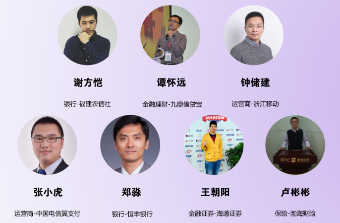 恒丰来自银行的科技服务管理部副总经理郑淼,他将和大家分析恒丰金融云探索实践,恒丰银行近年在金融创新上的举措行业瞩目,其成果和经验尽在此时分享;来自福建农信社的架构师谢方恺,分享基于金融核心系统的SQL审核和应用质量管控实践;来自海通证券的云架构师王朝阳将状语从句:大家分享,海通证券金融云思考与实践;而来自渤海保险的卢彬彬将和大家分享渤海财险数据架构智能化演进,保险行业处于快速发展的黄金时代,来自保险行业的技术架构创新也非常值的关注;九鼎来自借贷宝的技术专家谭怀远,将和大家分享甲骨文数据库在互联网金融行业的应用实践,借贷宝的独特互联网金融创新模式,一直倍受关注,这一次我们可以一窥其数据平台的技术架构。