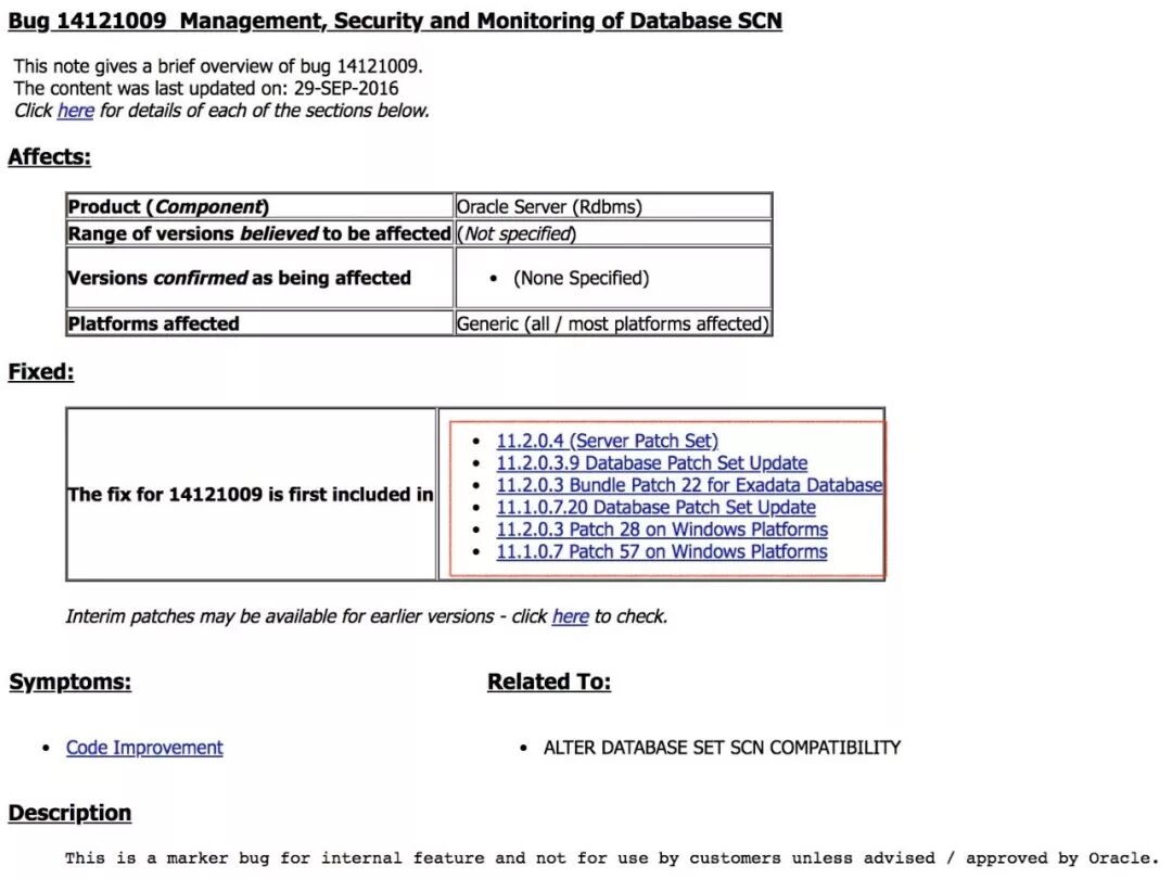 为什么引入这样的修改和补丁? 因为 SCN 是 Oracle 的核心机制,过去遇到的 Headroom问题必须获得彻底消除,所以算法需要调整,这是非常核心的改变。