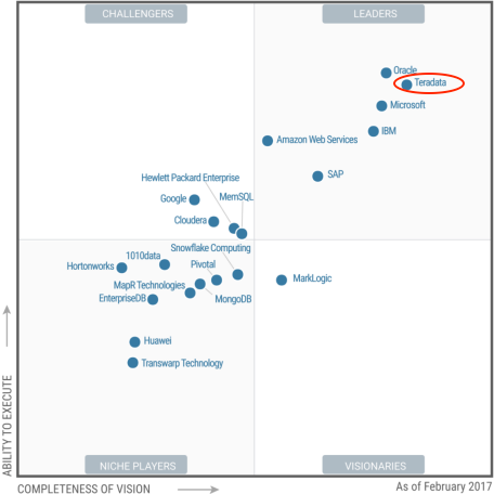 图5 Teradata在2017年Gartner数据仓库魔力象限中的表现