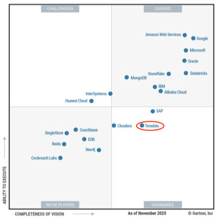 图6 Teradata在2025年Gartner云数据库管理系统魔力象限中的表现